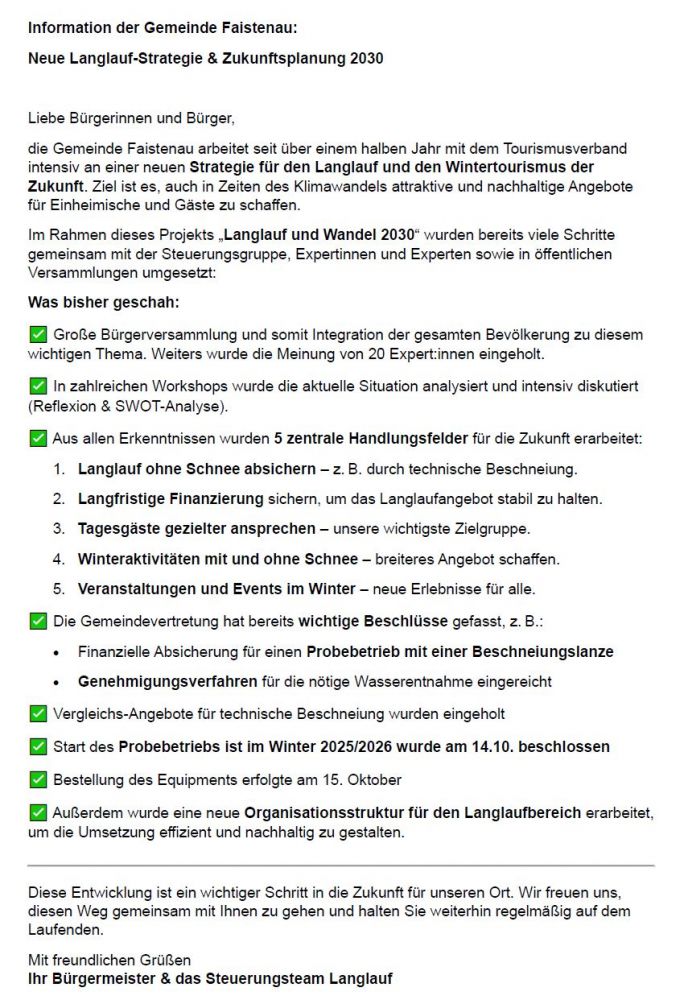 Veranstaltungstipps: Sonntag, 4. Jänner 2026 von 9 - 15 Uhr: Hervis Langlauf Testtag beim Loipeneinstieg Schulsportplatz Faistenau Sa 10. + So 11. Jänner 2026 Austria Cup im Ski – Orienteering, Orientierungslauf Langlauf beim Loipeneinstieg Schulsportplatz Faistenau